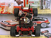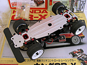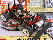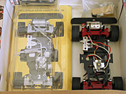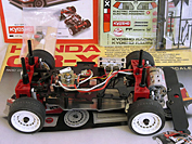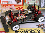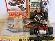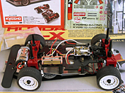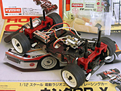 This vintage R/C by Kyosho was sold as a kit with both the body and the chassis. It came mostly assembled, just requiring painting of the body and the addition of some electronics.